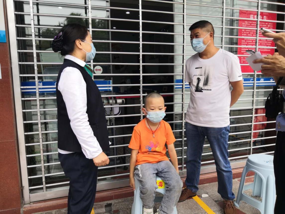 當(dāng)日中午,龍泉營(yíng)業(yè)廳大堂經(jīng)理王萍發(fā)現(xiàn)一名年幼的小男孩獨(dú)自坐在營(yíng)業(yè)廳門前的馬路邊哇哇大哭,臉上一臉驚恐。極具責(zé)任心和愛(ài)心的王萍急忙上前詢問(wèn)發(fā)生了什么事?從孩子口中得知,他是大悟人,上午和媽媽、妹妹到西寶山游玩時(shí)走散了,又不知道回家的路,他很著急,不知道該怎么辦。