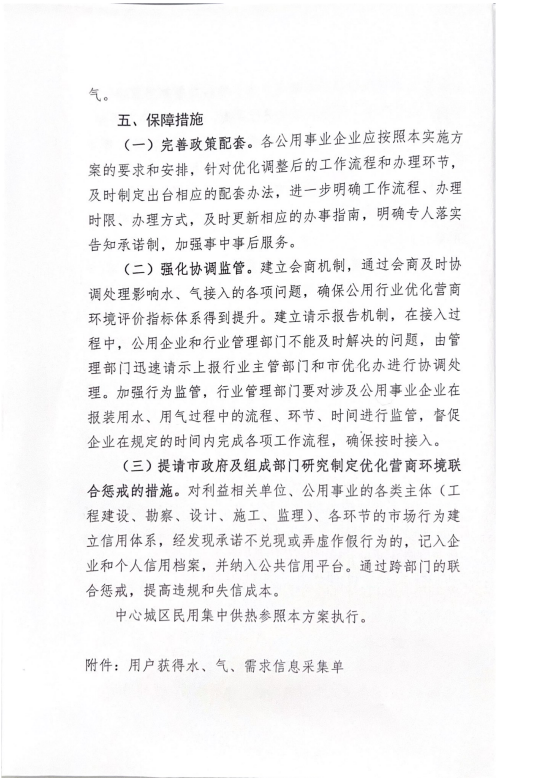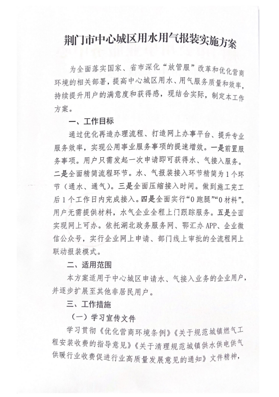 關(guān)于進(jìn)一步優(yōu)化中心城區(qū)用水用氣報(bào)裝實(shí)施方案的通知