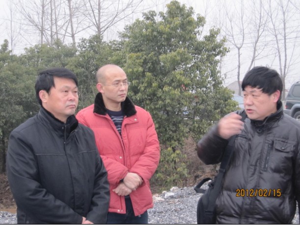 荊門市供水總公司總經(jīng)理陳衛(wèi)國(guó)(左一)、黨委書記陳永根(左二)到華能荊門熱電聯(lián)產(chǎn)工程工地,聽(tīng)取該項(xiàng)目負(fù)責(zé)人介紹工程建設(shè)前期用水需求。