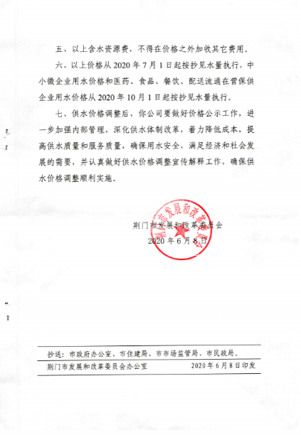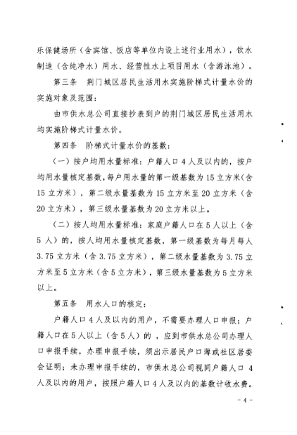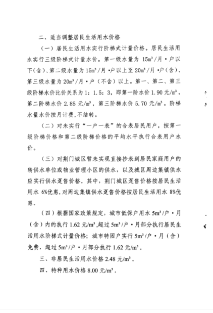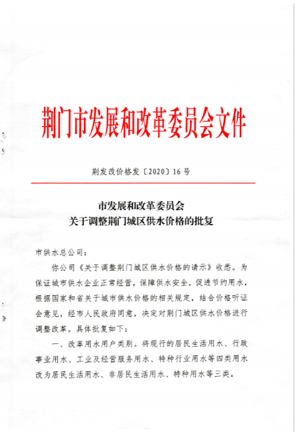 荊門城區(qū)供水價格批復(fù)和管理實施辦法