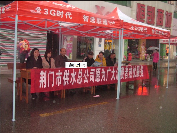 3月15日,市供水總公司黨委書記、副總經(jīng)理陳永根率客服中心、二供所等窗口人員,冒雨在中天街開(kāi)展消費(fèi)日活動(dòng),宣傳供水政策知識(shí)、現(xiàn)場(chǎng)接受用戶咨詢、認(rèn)真開(kāi)展服務(wù)。