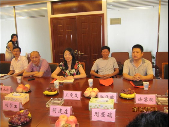 圖為十堰市物價局領導偕十堰市自來水公司董事長劉學生、東風汽車公司水務公司總經(jīng)理周肇端與我司交流。