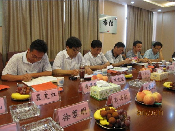 公司特別注重加強與兄弟水司橫向聯(lián)系,熱忱歡迎同行到公司傳經(jīng)送寶。圖為公司黨委書記陳永根(左三)、副書記、紀委書記、工會主席徐黎明(右一)陪同荊門市物價局領導向十堰市物價局和十堰水司、東風水司領導們介紹階梯水價執(zhí)行情況。