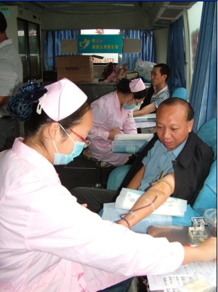 荊門市供水總公司熱心公益事業(yè),積極和荊門市中心血站聯(lián)系,組織發(fā)動職工志愿者義務(wù)獻血。圖為公司職工在流動獻血車上獻血。