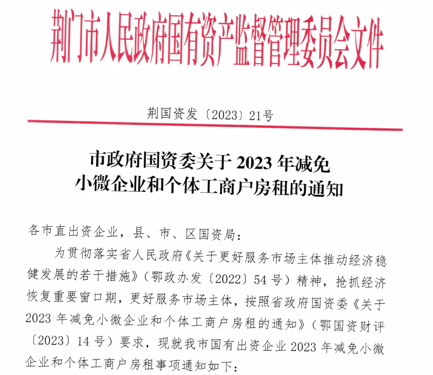 市政府國(guó)資委關(guān)于2023年減免小微企業(yè)和個(gè)體工商戶房租的通知