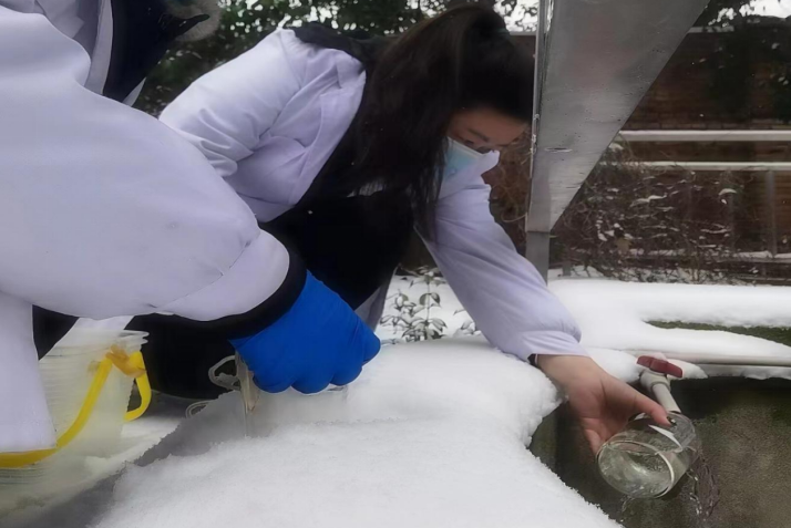 化驗室加強對反應池、沉淀池的跟班分段檢測,及時了解低溫期凈水絮凝效果,指導廠站合理調(diào)整制水工藝。加大特殊時間段的水質(zhì)檢測頻次,確保從源頭到龍頭水質(zhì)達標。