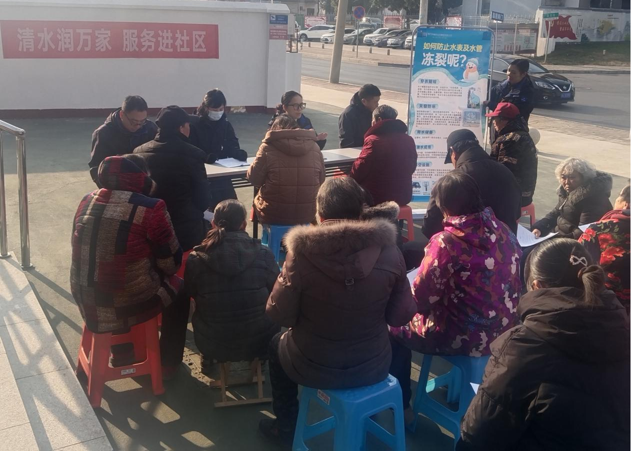 12月20日上午,水務(wù)集團(tuán)送服務(wù)進(jìn)掇刀區(qū)楊灣社區(qū),開展水表防凍保暖宣傳活動,確保居民冬天用水正常。