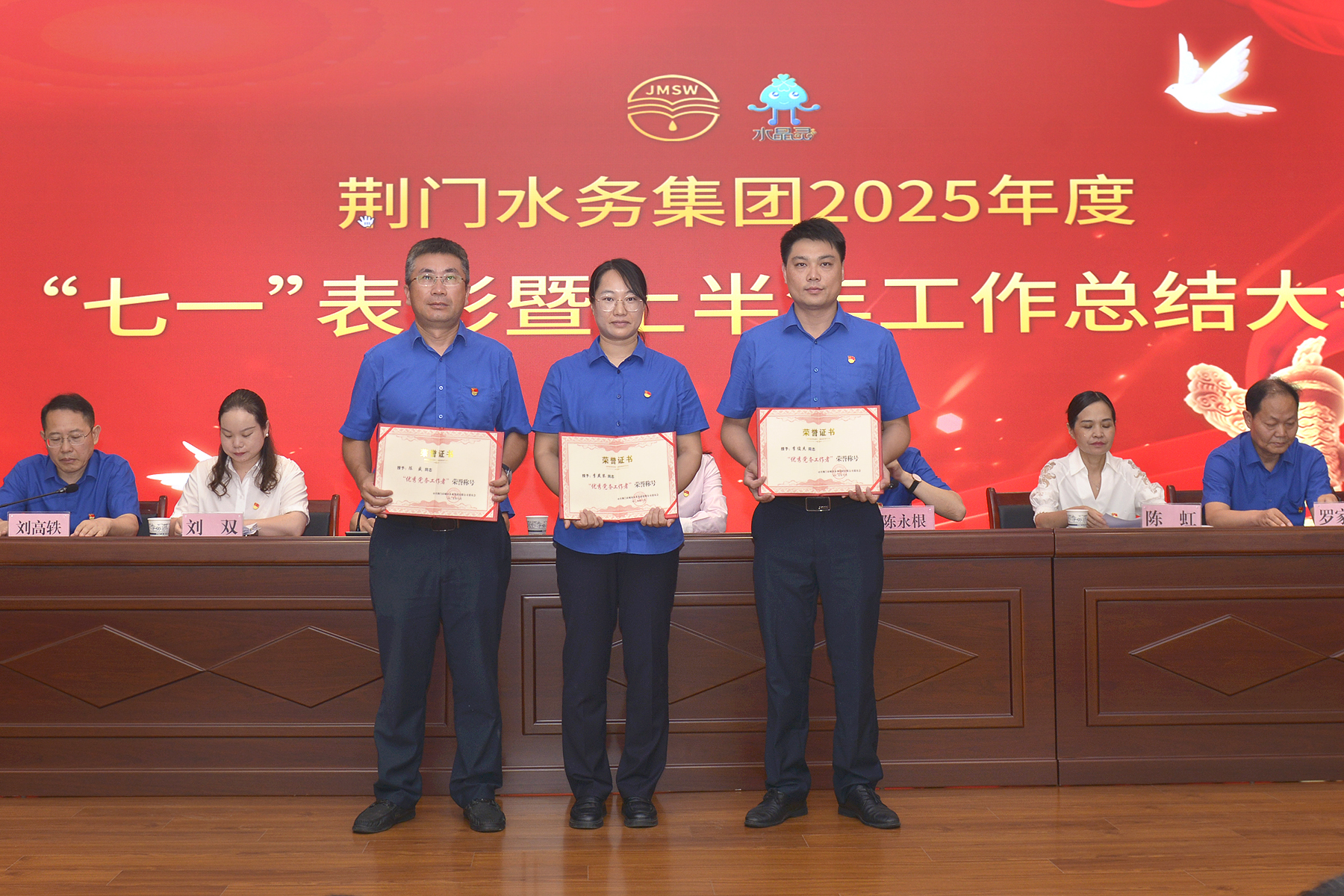 在建黨104周年之際,集團黨委對過去一年中作出突出貢獻(xiàn)的2個“先進(jìn)基層黨組織”(詠泉黨支部、荊襄供水黨支部)、3名“優(yōu)秀黨務(wù)工作者”(陳盛、李燕琴、李俊杰)和8名“優(yōu)秀共產(chǎn)黨員”(荔紅、李小龍等)給予表彰,號召各支部和全體黨員對標(biāo)先進(jìn)、砥礪前行,為推動水務(wù)集團高質(zhì)量發(fā)展作出新的更大貢獻(xiàn)。