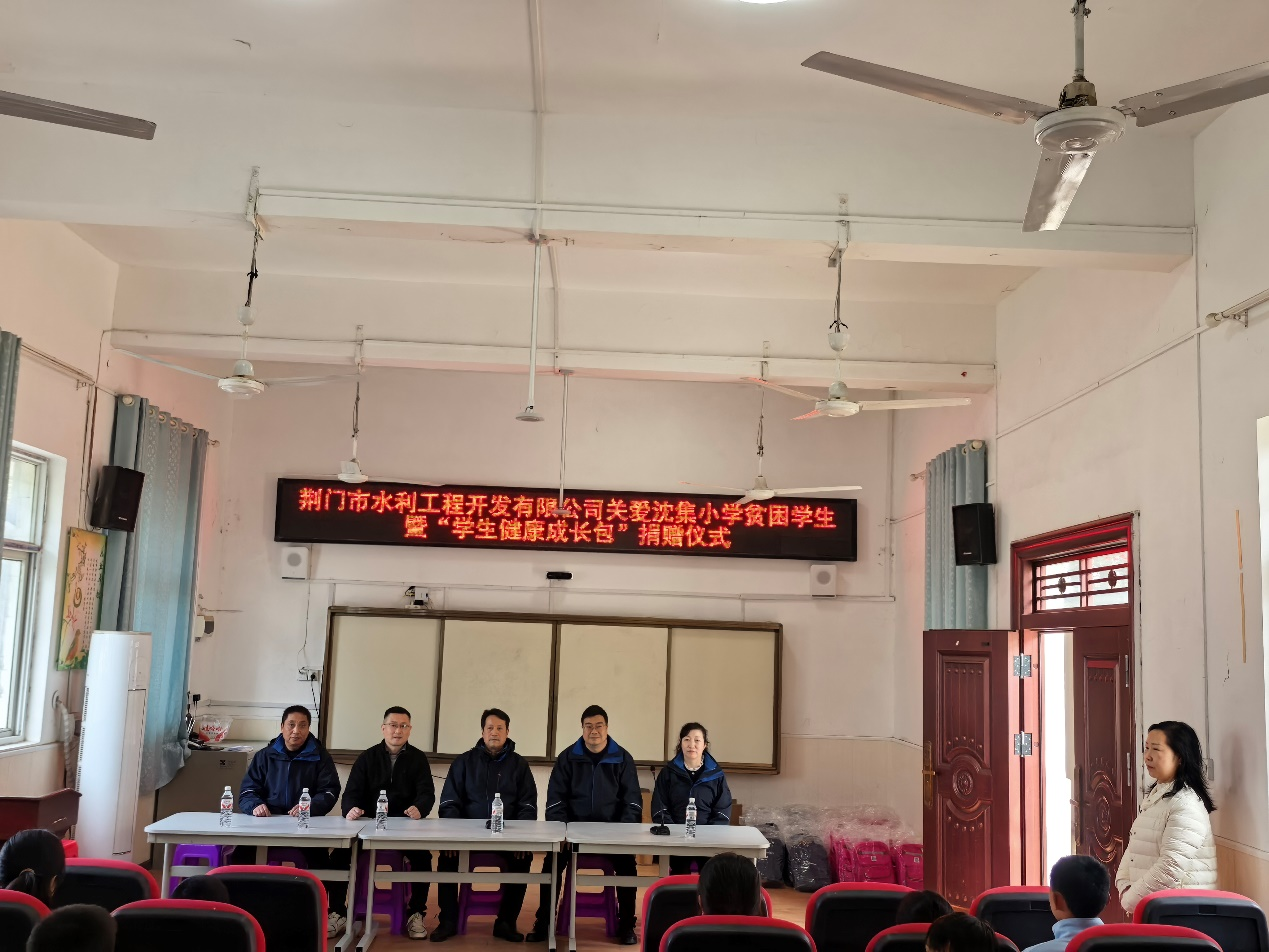 3月11日下午,荊門市水利工程開發(fā)有限公司(以下簡稱“荊門水發(fā)公司”)走進沙洋縣沈集鎮(zhèn)中心小學,開展市關(guān)工委組織的“關(guān)愛青少年健康成長包”專項捐贈活動。