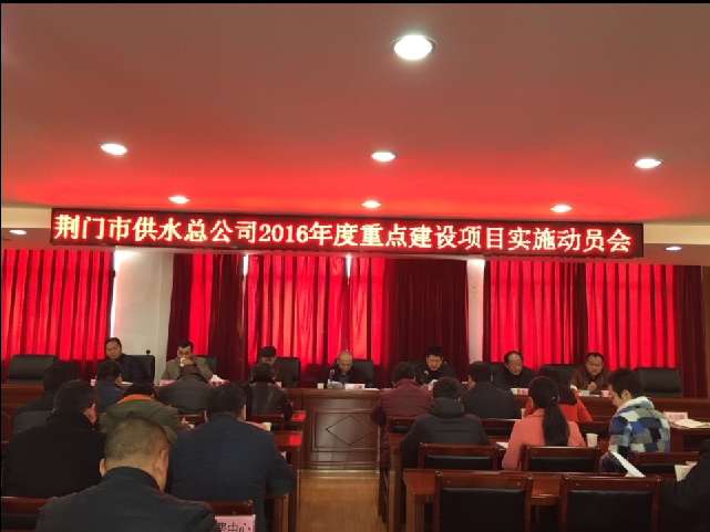 黨委書記、總經理陳永根作會議動員,陳總分析了當前發(fā)展形勢,指出2016年公司面臨重大發(fā)展機遇和挑戰(zhàn)。隨著中央城市工作會議以及市委七屆八次全體會議的召開,城市建設迎來歷史性發(fā)展機遇,荊門江漢平原中心城市的定位,十三五期間荊門城市建設資金達2200億元,三年滾動資金就達800億,2016年公司政府投資項目資金達1億,要搶抓機遇 、迎難而上,攻堅克難、鍛煉隊伍、優(yōu)化結構,開辟新的經濟增長點;要強化措施,成立四水廠、中心城區(qū)供水設施、象山大道改造、三條高速出入口改造及中心城區(qū)消防栓建設、掇刀區(qū)供水管網建設、東寶區(qū)供水管網建設、漳河新區(qū)供水管網建設、響嶺加壓站和二水廠備用電源等七個項目建設專班,分別由一名副總經理擔任責任領導,對應一個責任處室、單位,明確職責、層層抓好落實;要抓好項目前期工作,確保項目落地生根,確保按時保質完成;相互溝通協(xié)調協(xié)作、形成合力,確保本職工作、項目建設兩不誤兩促進;要強化執(zhí)紀問責,由公司紀委負責,加強對重點工作、項目落實情況進行督辦問責、推動落實,按照任務分工、時間節(jié)點督辦,強化擔當、強化執(zhí)行力,加快進程,對落實不力的、遲滯延誤的要根據《中國共產黨紀律處分條例》相關條款進行處理;要創(chuàng)新開展工作,主動與主管部門對接、協(xié)調,提前謀劃、積極跑事、干事、時不我待、只爭朝夕;要增強項目廉潔自律意識,按規(guī)矩辦事、不踩紅線,確保項目立得起、干部挺得住,能干事、干成事、不出事。會議動員全體干部職工鼓足干勁、通力協(xié)作,迅速掀起項目建設、會戰(zhàn)熱潮。