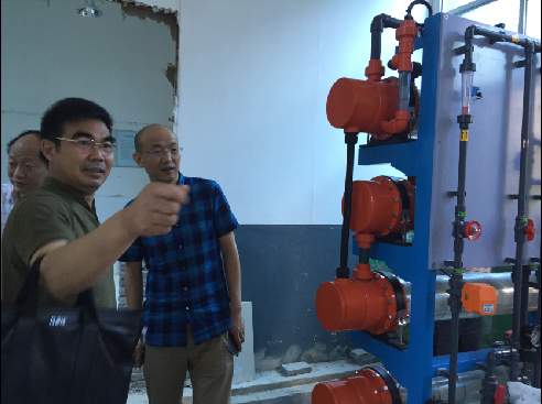 一水廠為城市備用水廠,始建于1969年,以前凈化工藝采取傳統(tǒng)的加氯(氯氣瓶儲存供應(yīng))方式,考慮到一水廠地處省重點中學龍泉中學旁,人口密集,存在?;沸孤┌踩[患,公司通過考察,慎重決策,在內(nèi)地(目前僅在沿海地區(qū)發(fā)達城市應(yīng)用)首家引進次氯酸鈉加氯(電解反應(yīng),邊制造邊供應(yīng))方式,投資50萬進行工藝改造,徹底解除這一公共安全隱患。在改造現(xiàn)場,公司黨委書記、總經(jīng)理陳永根要求,一水廠次氯酸鈉加氯改造項目要加快建設(shè),確保6月底前投運,同時要做好職工培訓工作,確保人人能按新工藝規(guī)程進行熟練操作,確保公共安全。