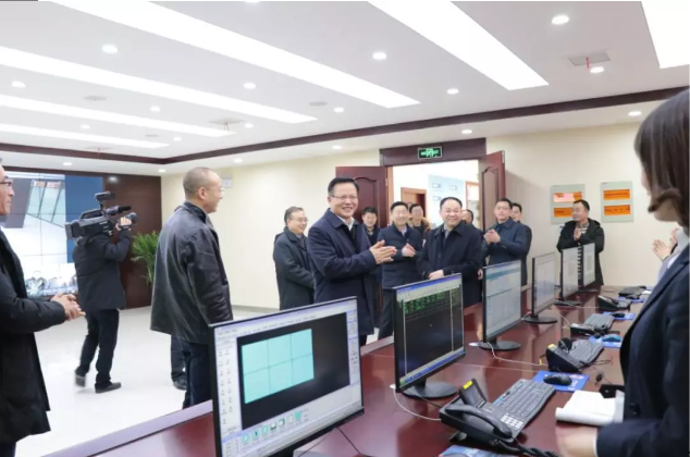 2018年剛完成升級(jí)改造的供水調(diào)度監(jiān)控中心寬敞明亮、恢弘別致。張愛(ài)國(guó)詳細(xì)查看了應(yīng)急指揮系統(tǒng)運(yùn)行情況,并對(duì)供水生產(chǎn)經(jīng)營(yíng)情況進(jìn)行了詢(xún)問(wèn)。