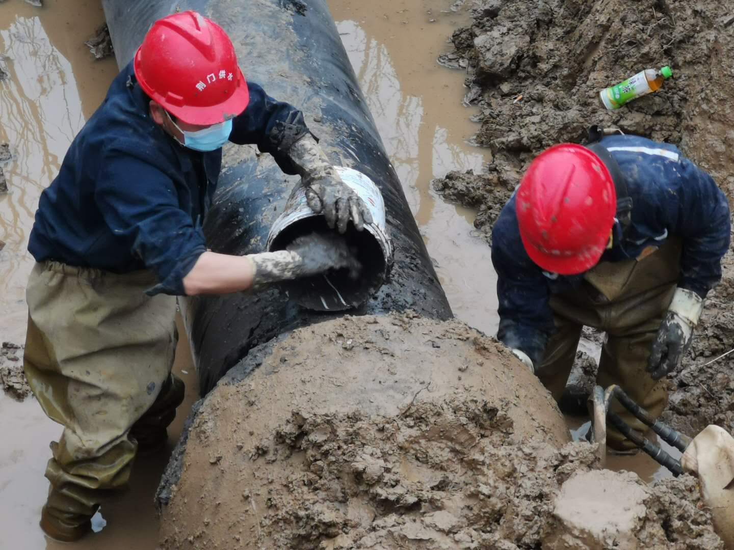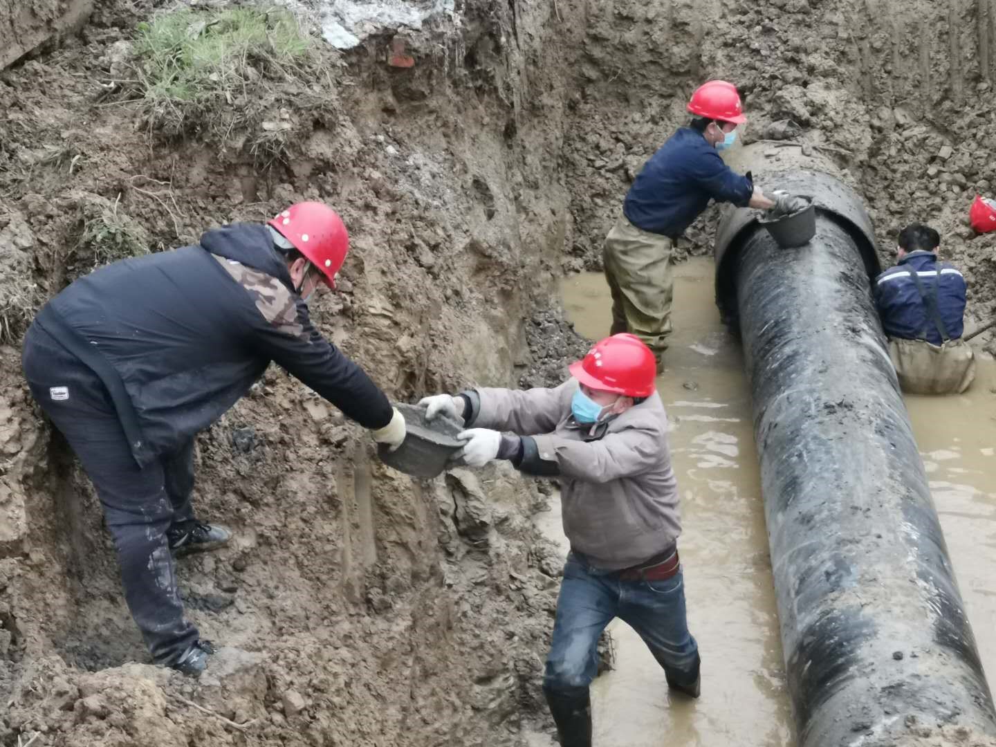 2月23日10時(shí),掇刀區(qū)迎春大道人福藥業(yè)門前DN600mm主供水管道突發(fā)爆管,供水維修部門迅速啟動(dòng)疫情期間應(yīng)急搶修預(yù)案,組織人員、工程機(jī)械、維修設(shè)備趕赴現(xiàn)場,經(jīng)過9個(gè)多小時(shí)的緊張搶修,于當(dāng)日晚7點(diǎn)42分恢復(fù)了供水。緊接著次日8點(diǎn),東寶區(qū)科陽路DN600mm主供水管道突發(fā)爆管,巡查人員現(xiàn)場核實(shí)后迅速止水,并及時(shí)通告用戶停水信息后開始倒閘排水,到13時(shí)左右開挖出爆管的DN600的主供水管道出現(xiàn)在大家面前,相比前日的搶修,整段水管因裂口較大損壞嚴(yán)重,不能簡單修復(fù),只能現(xiàn)場立即制定可靠的管道更換維修方案。當(dāng)時(shí),全部工作人員從早上到現(xiàn)場已經(jīng)工作了5個(gè)小時(shí),滴水未進(jìn),但大家為保障搶修進(jìn)度,仍然堅(jiān)持一邊加班加點(diǎn)對(duì)基坑進(jìn)行處理,一鼓作氣將破損管道清理出來,做好對(duì)接管道的清淤工作。另一邊搬運(yùn)快干水泥,切割、加工、運(yùn)輸、吊裝管道,14點(diǎn)35分把全部材料物資運(yùn)抵現(xiàn)場開始作業(yè)。隨后,大家在泥地里匆匆啃了幾口方便面后,又投入到緊張的搶修工作中,終于在18點(diǎn)17分完成了維修,待水泥養(yǎng)護(hù)好后,于21點(diǎn)27分通水,及時(shí)保障了科陽路企業(yè)和周邊居民的正常生產(chǎn)生活用水。
