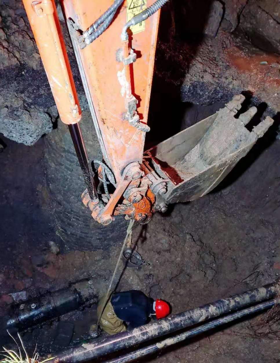 1月28日8時(shí),白云大道農(nóng)行家屬區(qū)門(mén)口DN100管道爆裂,因在人行道上,地下管線交錯(cuò)復(fù)雜,不能用工程機(jī)械開(kāi)挖,黃磊帶領(lǐng)班組人員硬是挨著管線用手刨釬撬,人工開(kāi)鑿出搶修坑,在連續(xù)奮戰(zhàn)3個(gè)小時(shí)后,趕在用水高峰期搶修完畢給用戶通水。這邊剛搶修完,那邊又接到值班電話通知建設(shè)街DN200管道漏水,如不及時(shí)搶修,在漏水失壓的情況下會(huì)造成大面積用戶無(wú)水,黃磊沒(méi)有一絲懈怠,立即組織人員、機(jī)械到現(xiàn)場(chǎng),簡(jiǎn)單吃了一桶泡面又投入到搶修工作中,搶修現(xiàn)場(chǎng)居民感動(dòng)不已,紛紛送來(lái)手套、口罩、方便面等慰問(wèn)品。下午3時(shí),多輝農(nóng)產(chǎn)品市場(chǎng)因封路時(shí)挖機(jī)將DN50管道拉斷,考慮到已經(jīng)連續(xù)奮戰(zhàn)多時(shí),公司領(lǐng)導(dǎo)準(zhǔn)備安排其它維修班組去搶修,其他隊(duì)伍集結(jié)需要時(shí)間會(huì)耽誤疫情控制,而且位處垃圾堆有感染風(fēng)險(xiǎn),黃磊主動(dòng)請(qǐng)纓出戰(zhàn)。晚上22時(shí),黃磊又接到出警電話,因楊家橋DN300管道爆裂,路上汪洋一片。他其實(shí)搶修完才到家一會(huì),但黃磊沒(méi)有遲疑,立即聯(lián)系機(jī)械進(jìn)場(chǎng),在班組微信群通知集結(jié)路線,沿路接人,在他的帶領(lǐng)下,從維修材料準(zhǔn)備到人員機(jī)械到位用了不到40分鐘,因開(kāi)挖后形成的基坑深度達(dá)近5米,為保障人工深基坑作業(yè)安全,黃磊一刻也沒(méi)離開(kāi)基坑,直到凌晨5時(shí)搶修完畢。